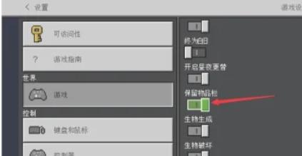 在游戏规则或作弊选项中,找到 “保留物品栏” 或 “死亡不掉落” 选项。将其开关设置为 “开启” 或 “是”。
