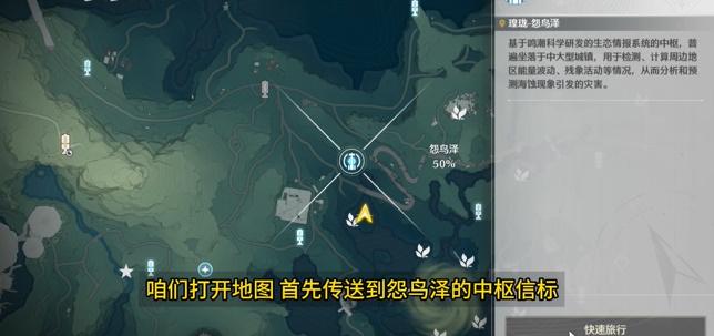 2、大家点击地图传送到怨鸟泽的中枢信标,可以在这里展开采集路线;