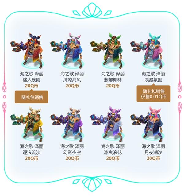 注意:2022年6月24日9:59后礼包不再包含【海之歌 泽丽 浪漫氛围】,礼包价格变为:19120点券(含英雄价21370点券)