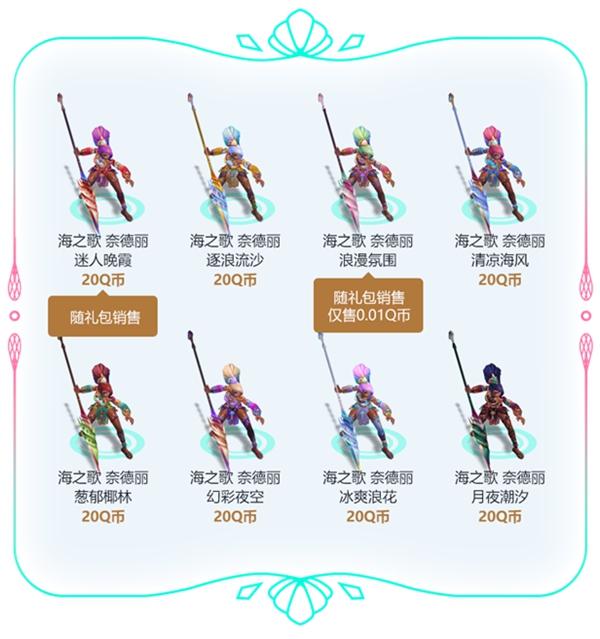 注意:2022年6月24日9:59后礼包不再包含【海之歌 奈德丽 浪漫氛围】,礼包价格变为:19120点券(含英雄价20870点券)