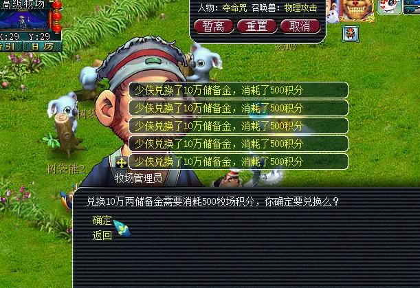 牧场积分获得方式有两种一是自己养小动物获得产出物卖掉后换取积分,二是自己去购买别人卖的积分比如桉树叶、竹叶青等,大约1牧场积分=130两梦幻币。而500牧场积分可以换100000储备金,而花费只需要65000两。