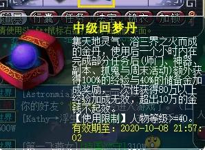 老玩家回流、绑定老玩家、北俱封妖后续均可获得中级回梦丹。