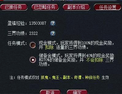 抓鬼、鬼王、副本等均可开储备金模式,不仅有三界功绩可获得还能有储备金提高自己。
