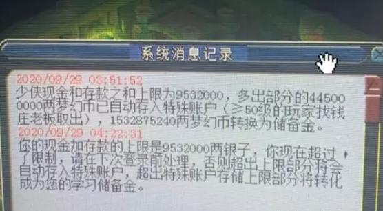 当身上的钱携带过多,如果下线时多出部分会自动存到特殊账户,如果特殊账户都存满了那就会变成储备金,且无法找回哦。
