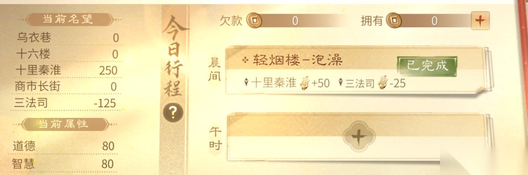 在事件完成后,小伙伴将根据剧情发展获得不同的属性与名望,故合理安排城主日程尤为重要。每日可安排三个日程,安排部分日程时,还有几率接到剧情任务,与明朝的才子佳人共谱属于你的南都篇章。