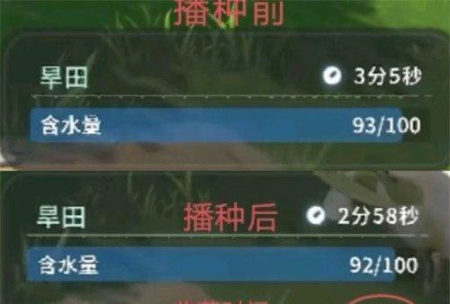 旱田这就是基础的农耕区域,主打的就是种植一些耐干旱的农作物,主要的核心就在于水分的管理。土地含水量从100%下降到0,只需要三分钟20秒。
