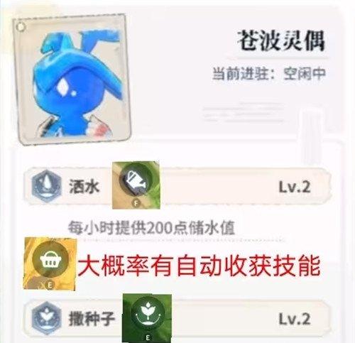 在播种的过程中会消耗3%的基础水量。例如糖心包菜播种就可以减少6秒的成熟时间,随着水分持续的流失,在操作上也可以选择简洁的逻辑。要想有效提升农耕的效率,那就需要合理的选择奇波每种不同的种类所具备的专属技能也会有所区别。水灵偶基本上每一个小时都可以提供200点的储水值,而且洒水技能单次就可以消耗一点储水。
