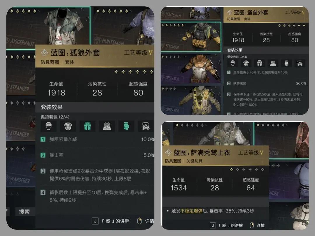 我们选择四孤狼套+一堡垒套+萨满秃鹫上衣。也可以选择三孤狼+二拯救+萨满秃鹫上衣。为什么这么选择呢?首先,白鲨是混伤枪,通过上面的解析可以得知最重要的伤害为爆伤的加成,因为枪械和异常都能暴击,都能吃到加成,叠爆伤事半功倍,所以选择孤狼套为主,专精装选择萨满最为合适,触发爆弹就加35%爆率,白鲨订制。散件的选择主要是看你缺什么伤害,堡垒+枪械,拯救+异常,可以灵活选择。