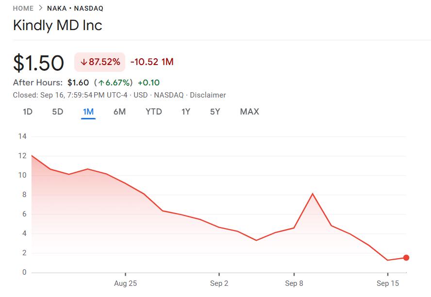 与医疗保健公司合并后KindlyMD8 月份,中本聪的股价在一天内暴跌逾 50%,目前较 5 月份的峰值下跌 96%,交易价格仅为 1.50 美元。