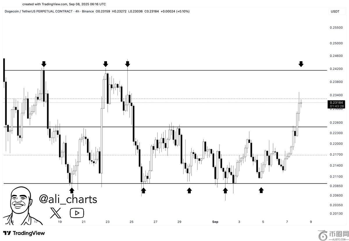 “狗狗币的目标是通道顶部 0.242 美元!”