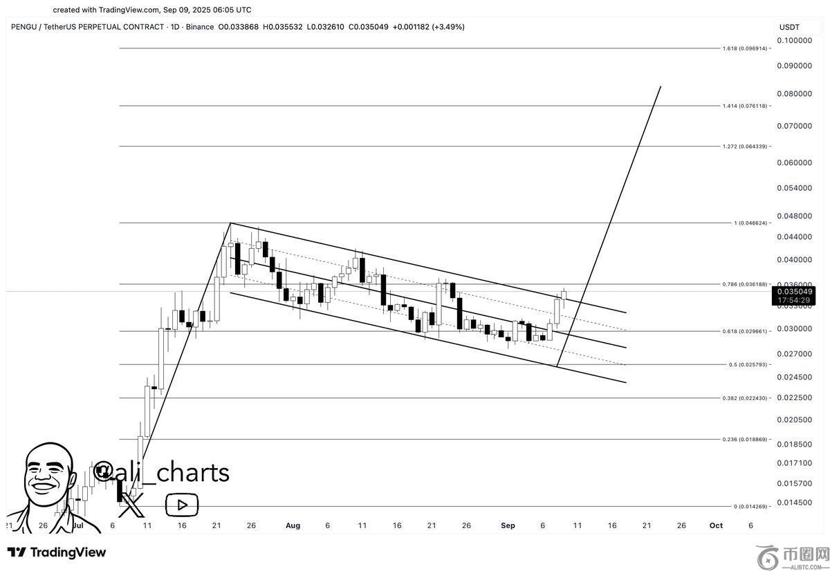 “PENGU 正在突破看涨模式,进入上涨至 0.09 美元的新阶段!”