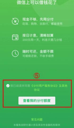 打开微信-我-服务-钱包页面进入。寻找并选择“分付”图标。接着点击【查看我的分付额度】按钮,进行激活分付开通流程。