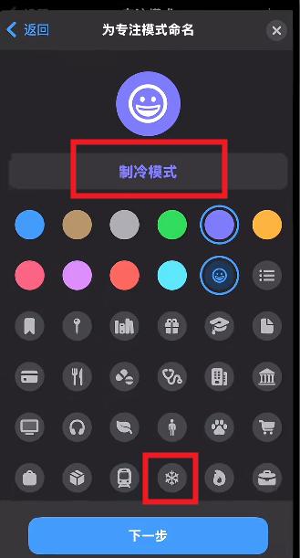 4,命名【制冷模式】,可以再加一个雪花的表情符号,点下一步;