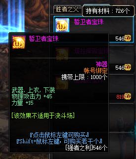 获得的胜者之义可以在NPC虚空法师罗恩处兑换反物质粒子、黑暗之眼灵能碎片以及泰波尔斯史诗袖珍罐(随机)。这里推荐给那些还没升级超5或没有做齐换装的小号兑换,加快小号成型的进度,而泰波尔斯史诗袖珍罐则没必要去兑换,一是所需的胜者之义数量过多,而且是随机获得一件,反正笔者这样的人品肯定不会开到自己想要的。
