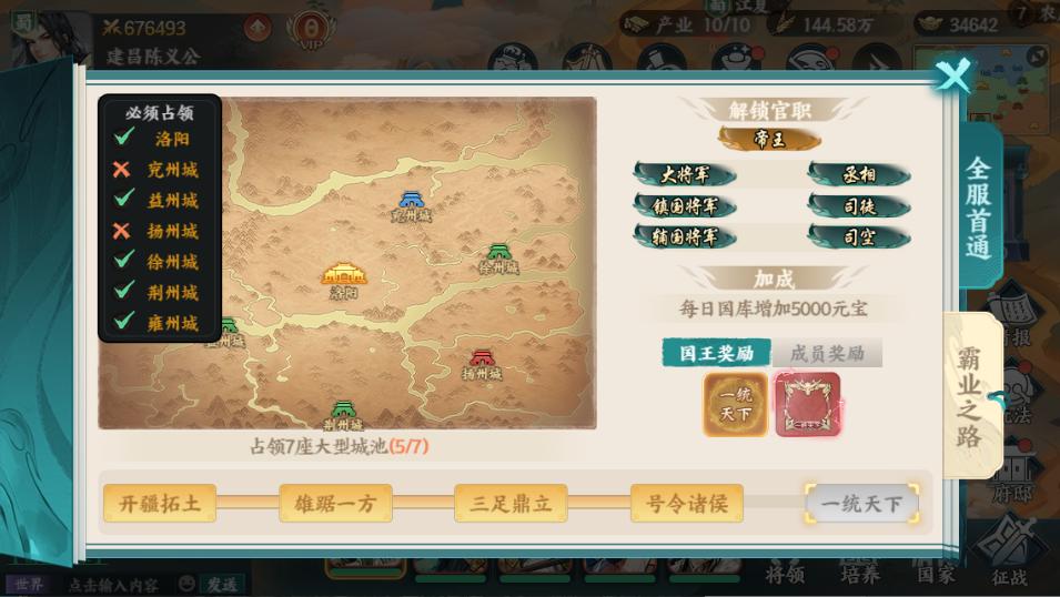 第五阶段:一统天下,完成所有州城/皇城的占领。