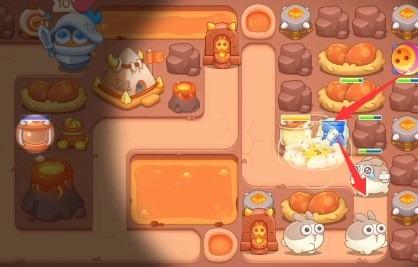 5、道具清完之后开始放置输出,也可以给已有的炮塔升满级,注意这一关的大冰冻兔。