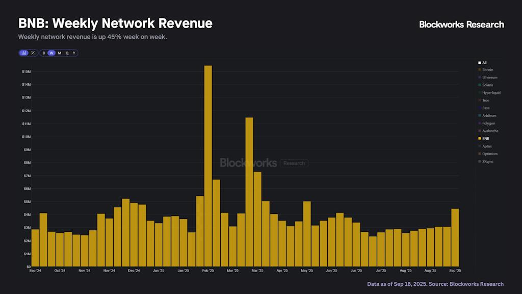 本周表现突出的主要货币是BNB,过去七天上涨超过10%。虽然BNB经常被忽视,但它今年悄然实现了强劲的回报,超越了大多数一级货币,排名仅次于HYPE。