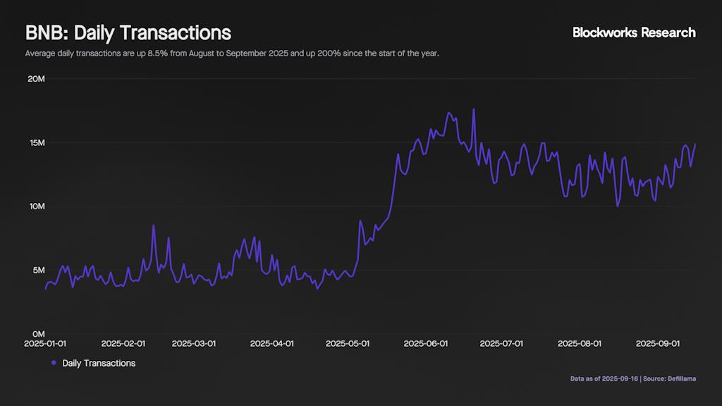 日均交易量环比增长8.5%,自年初以来更是飙升了200%,令人瞩目。近期在BSC上发行的代币,例如STBL和ASTER,也助推了BSC的交易量,自上线以来分别飙升了250%和450%。无论这些增长是自然增长还是精心策划的,这样的机会正在吸引更多链上交易者,渴望抓住下一个倍数。