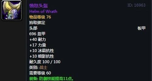 1、愤怒头盔:头部,掉落于奥妮克希亚巢穴副本奥妮克希亚掉落,推荐附魔力量的证明。
