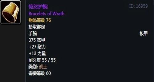 6、愤怒护腕:护腕,黑翼之巢副本狂野的拉佐格尔掉落,推荐附魔超强耐力。