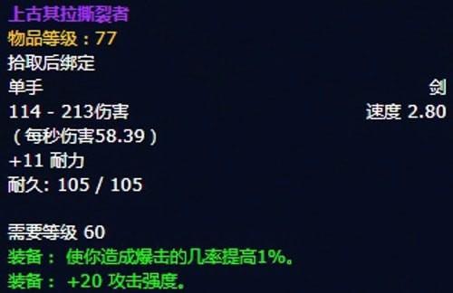 8、上古其拉撕裂者(人类):单手剑,安其拉副本顽强的范克瑞斯掉落,推荐附魔十字军;