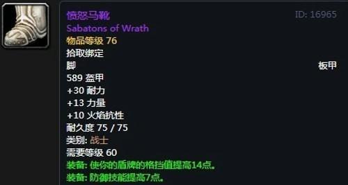 14、愤怒马靴:脚部,黑翼之巢副本勒什雷尔掉落,推荐附建初级速度。
