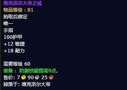 15、维克洛尔大帝之戒:戒指1,安其拉副本维克洛尔大帝掉落,无法附魔。