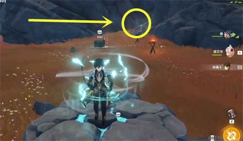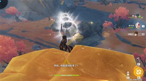 3、然后会出现光圈,我们跟过去来到“发光的石柱”用岩元素攻击