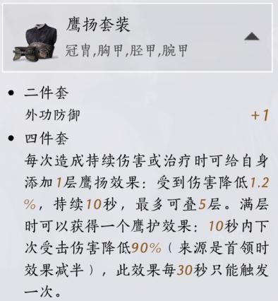 比较通用的防装,在词搭配中需要提升套装上限时才建议搭配,此武学中防具优先级远低于攻装。