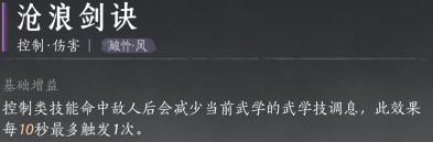 控制技能击中敌人后减少武学技1秒调息,此效果每十秒触发一次。无名枪法使用武学技击中后可减1秒cd。