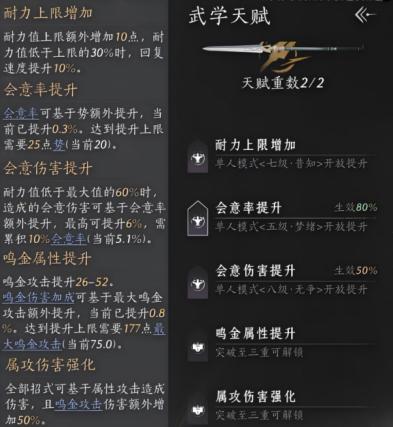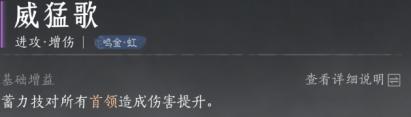 在释放武学技后加伤,且对被控制的敌人或40%真气以下的敌人额外增加高额伤害。